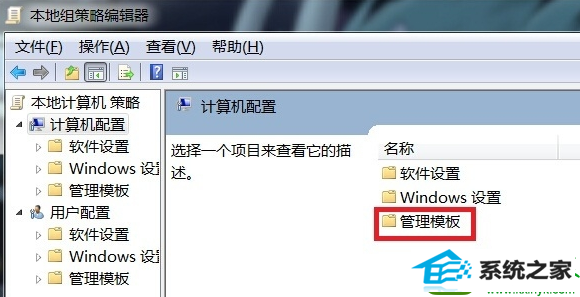 2、在“本地组策略编辑器”双击右侧的“计算机配置”。