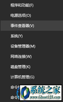 1、在开始菜单按钮上单击鼠标右键,选择事件查看器;