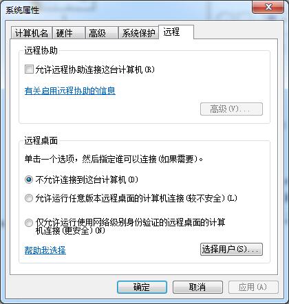3、当你们开启“远程系统属性”后,就能够看见“允许运行任意版本远程桌面的计算机连接”以及“仅允许运行使用网络级别身份验证的远程桌面的计算机连接”两项,你们可以根据个人需求勾选这两项里面的任意一项,最后大家点“应用——确定”键值直接。